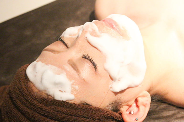 クレンジング⇒洗顔⇒ホットタオル⇒ハーブ塗布⇒鎮静ジェル⇒高濃度美容液